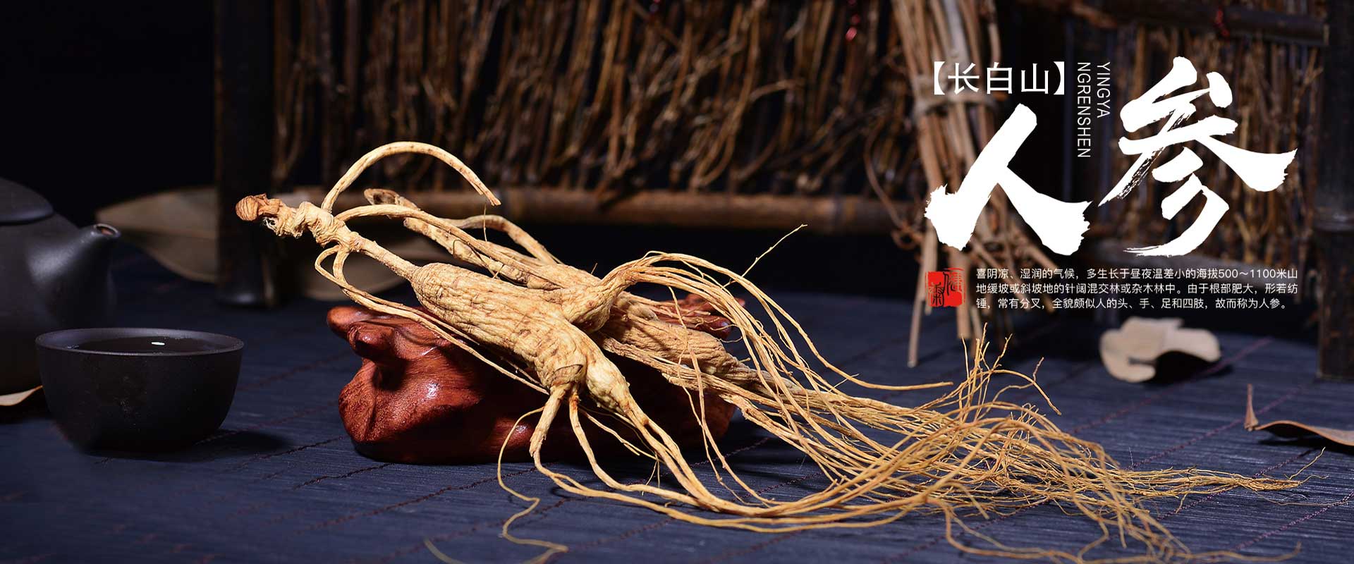 《神農本草經》是現存最早的中藥學專著記載著中國4000年前就已經形成的人參藥用的精髓:"人參,主補五臟,安精神,定魂魄,止驚悸,除邪氣,明自,開心益智。久服,輕身延年,一名人銜,一名鬼蓋。生山谷。 長白山山脈自然條件優越,生長的野山參質地飽滿、堅實、皮色褐黃、有效成分含量高,為野山參中的極品。